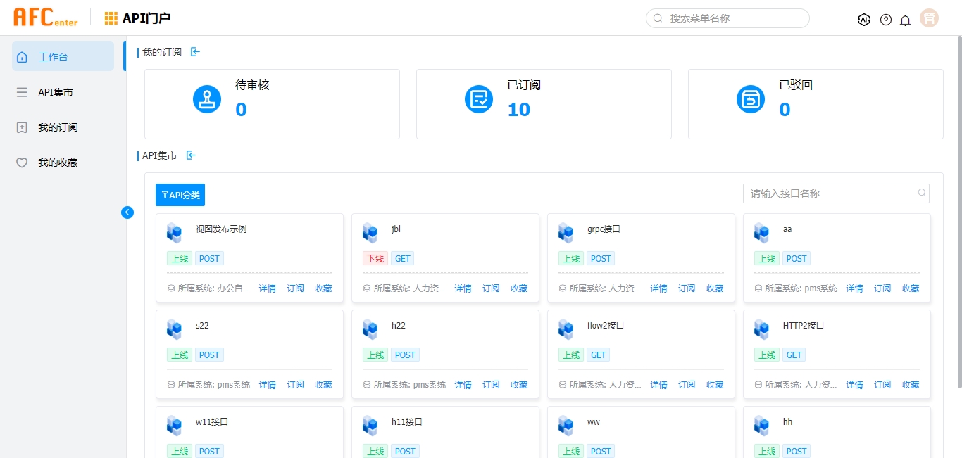 1. 使用manager账号(默认密码:000000)登录系统,点击API门户,进入API门户工作台。