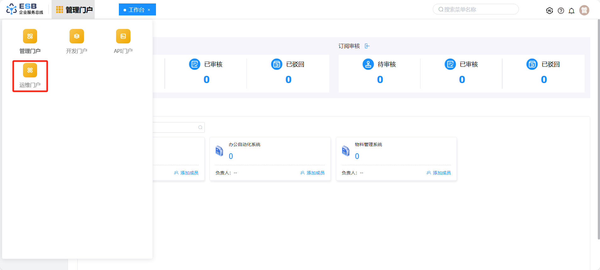 1.使用manager账号(默认密码:000000)登录系统,点击运维门户,进入运维门户页面。