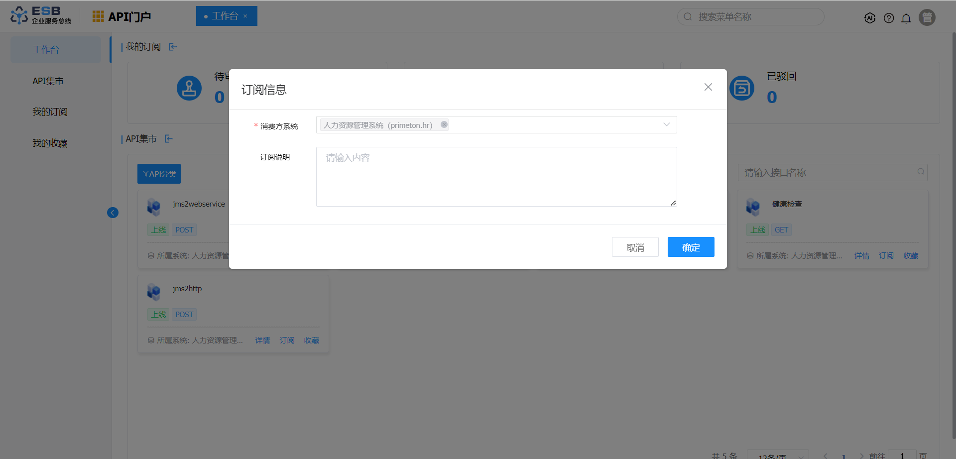 1.使用manager账号(默认密码:000000)登录系统,点击API门户,进入”工作台“页面。