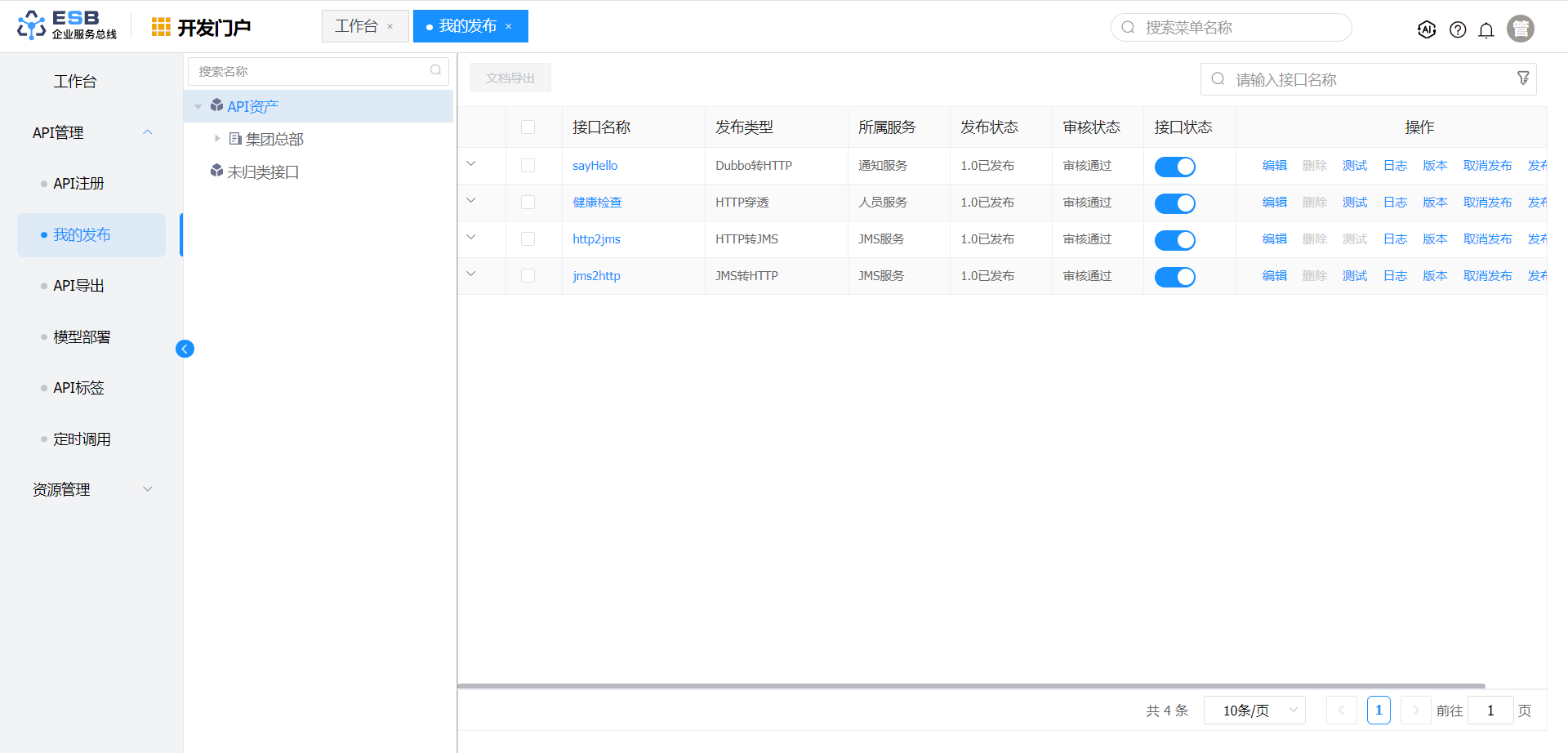 1.在"API管理">"我的发布"页面,可查看刚创建接口的发布记录。