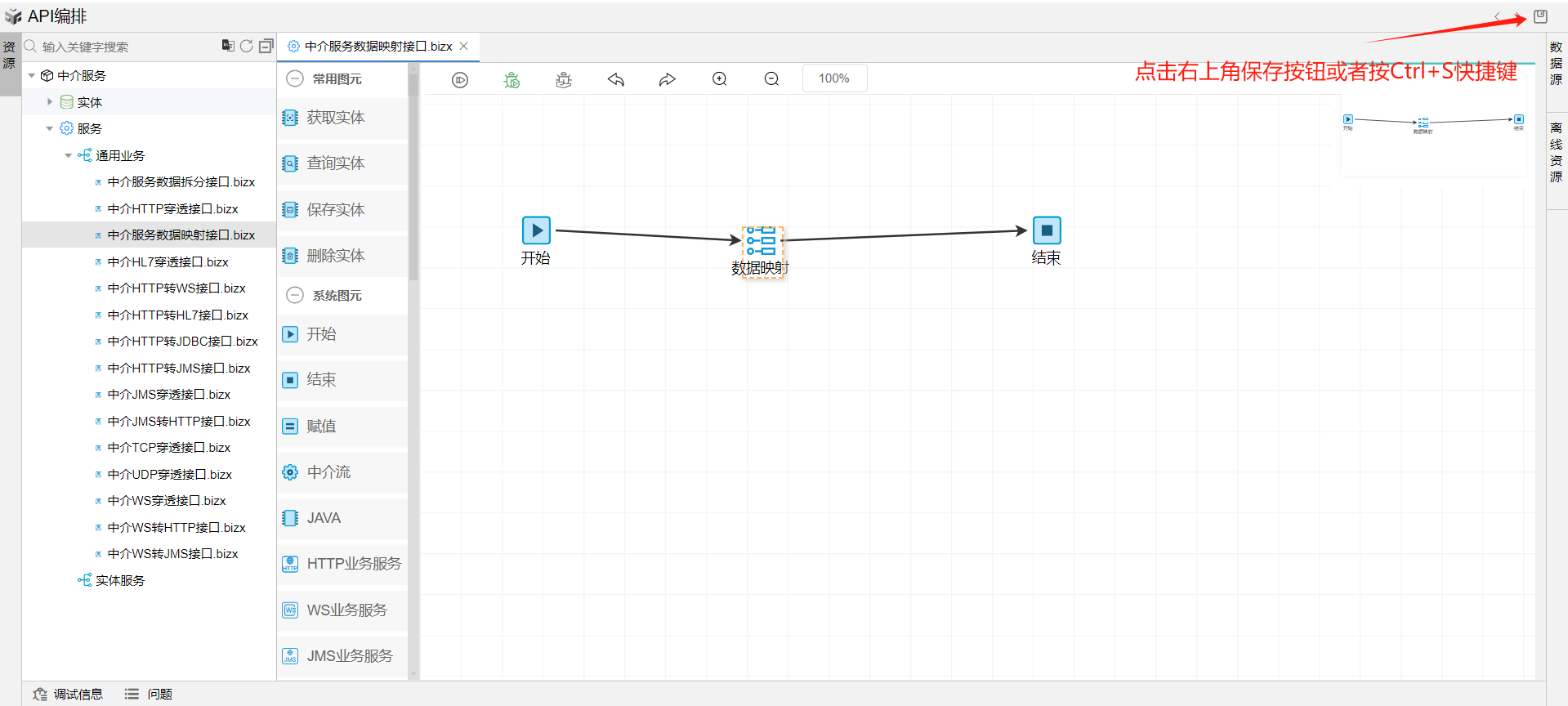 1.1.或者点击中介服务,点击右侧的API编排按钮进入在线编排页面。如下图: