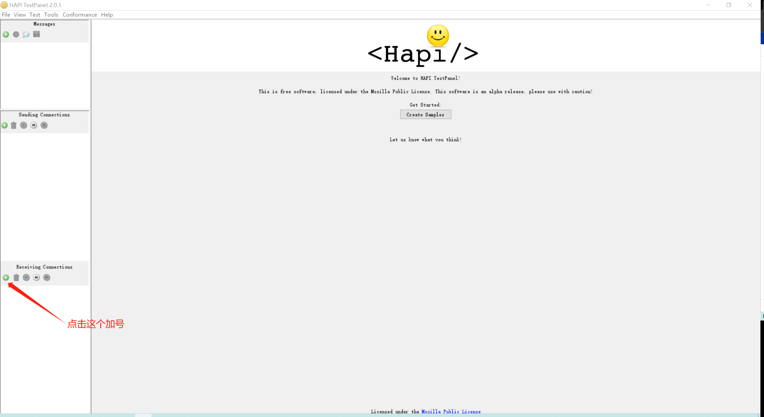 1. 下载HL7调试工具hapi-testpanel-2.0.1-windows.zip,下载后解压打开文件夹双击testpanel.exe启动工具。如下图: