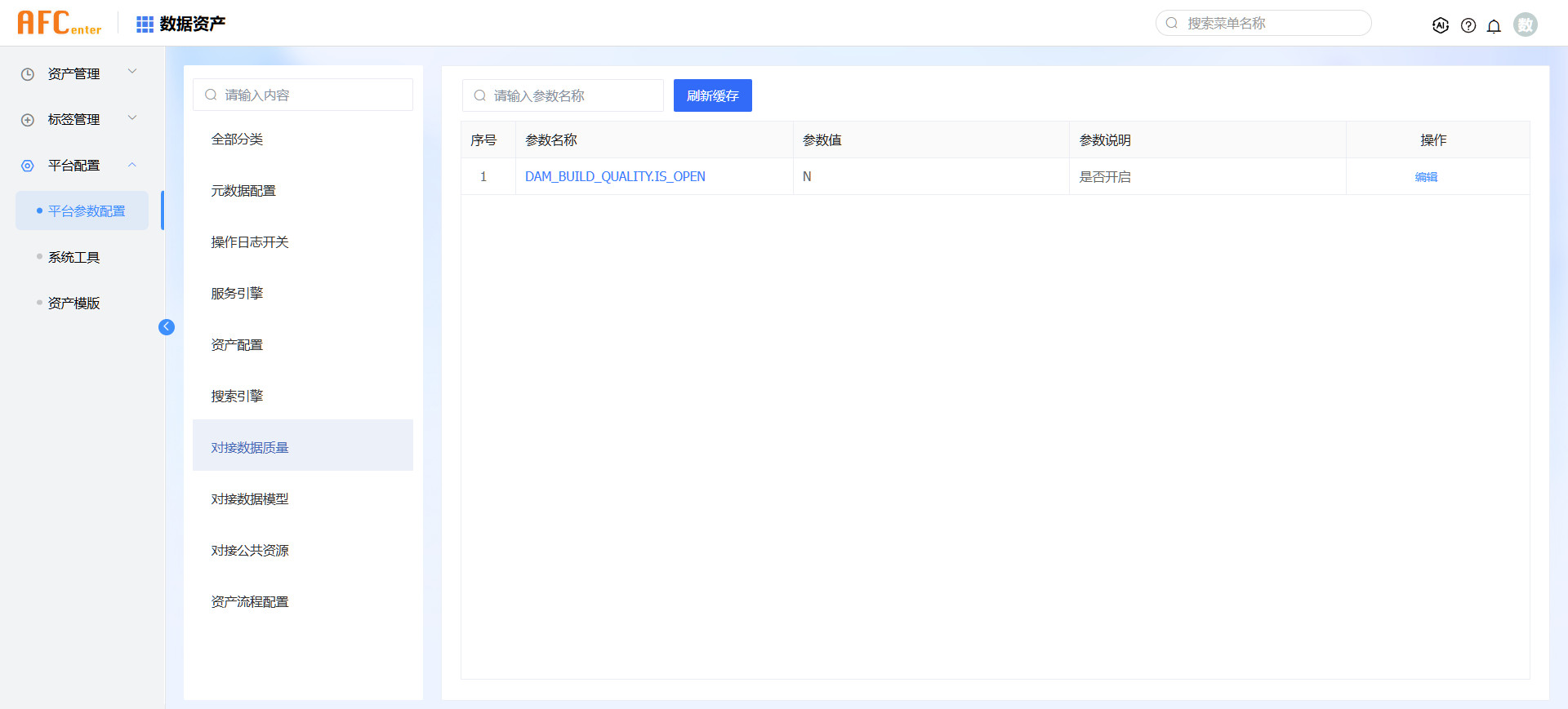 第一次登录系统后需要修改部分平台参数,其中必须初始化的配置参数包括元数据配置、服务引擎、搜索引擎。修改配置后需要重新启动DAMP后端应用。