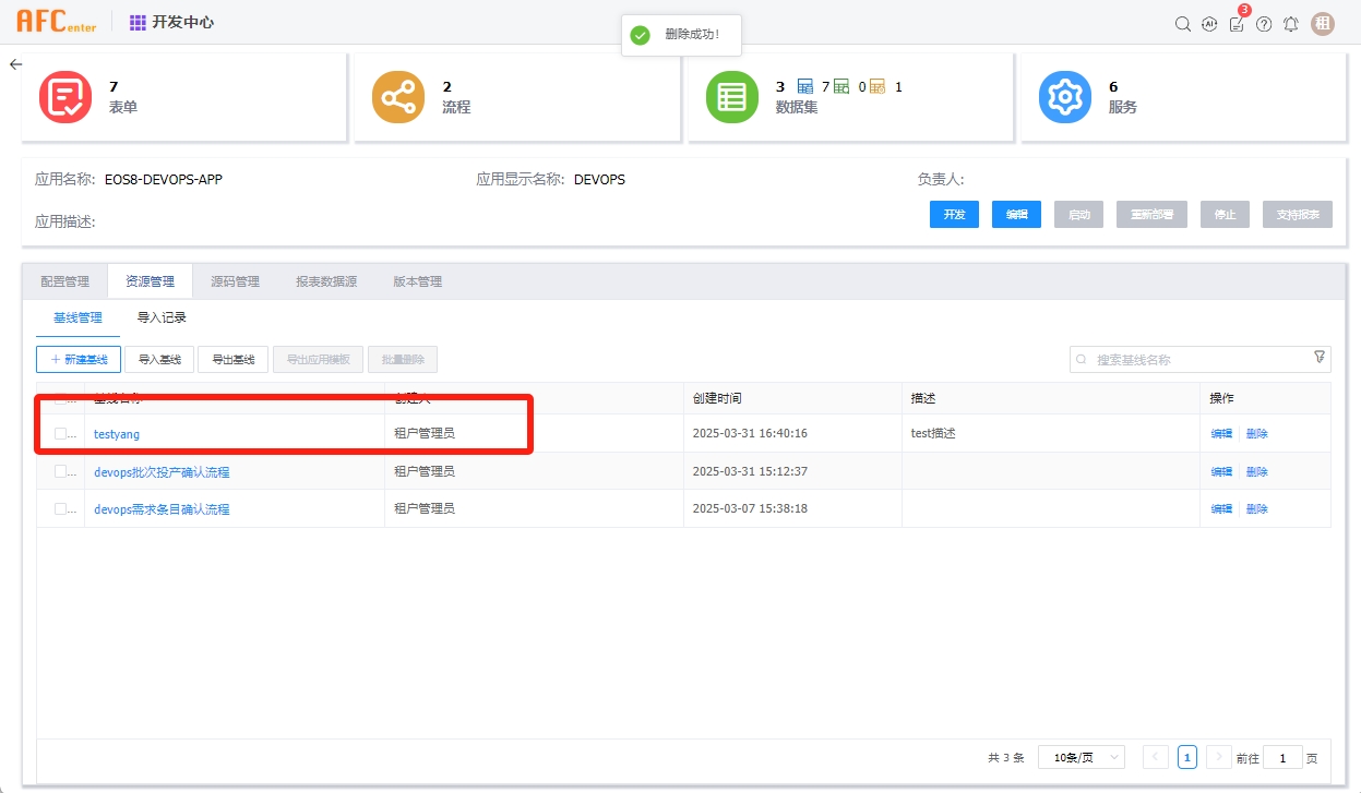 填写基线名称,备注,点击执行即可在对应低开应用内创建一个新的应用基线。