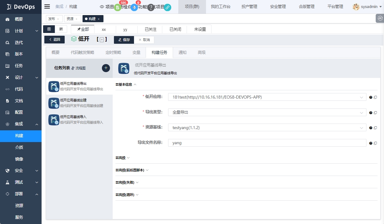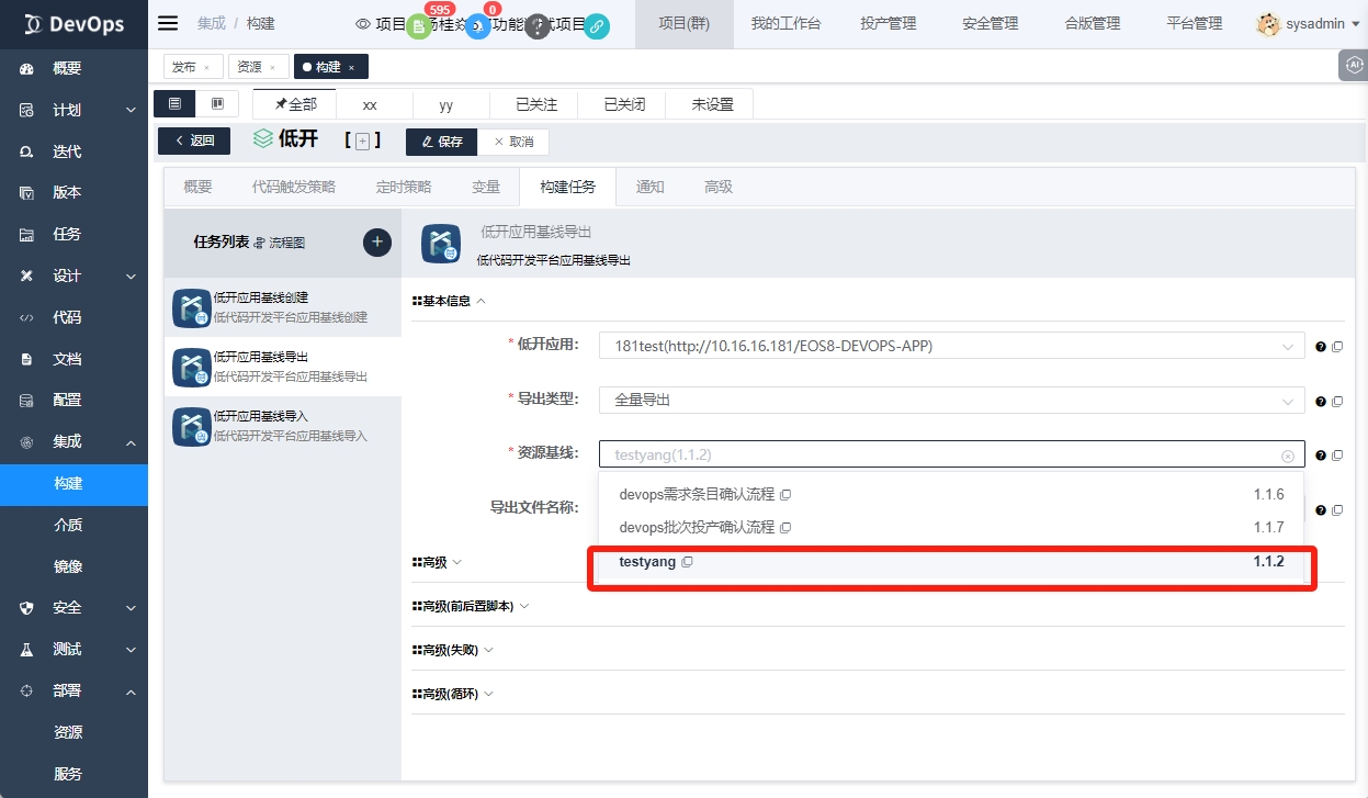 # 同一条流水线实现低开应用基线创建与导出(devops6.8GA将支持)