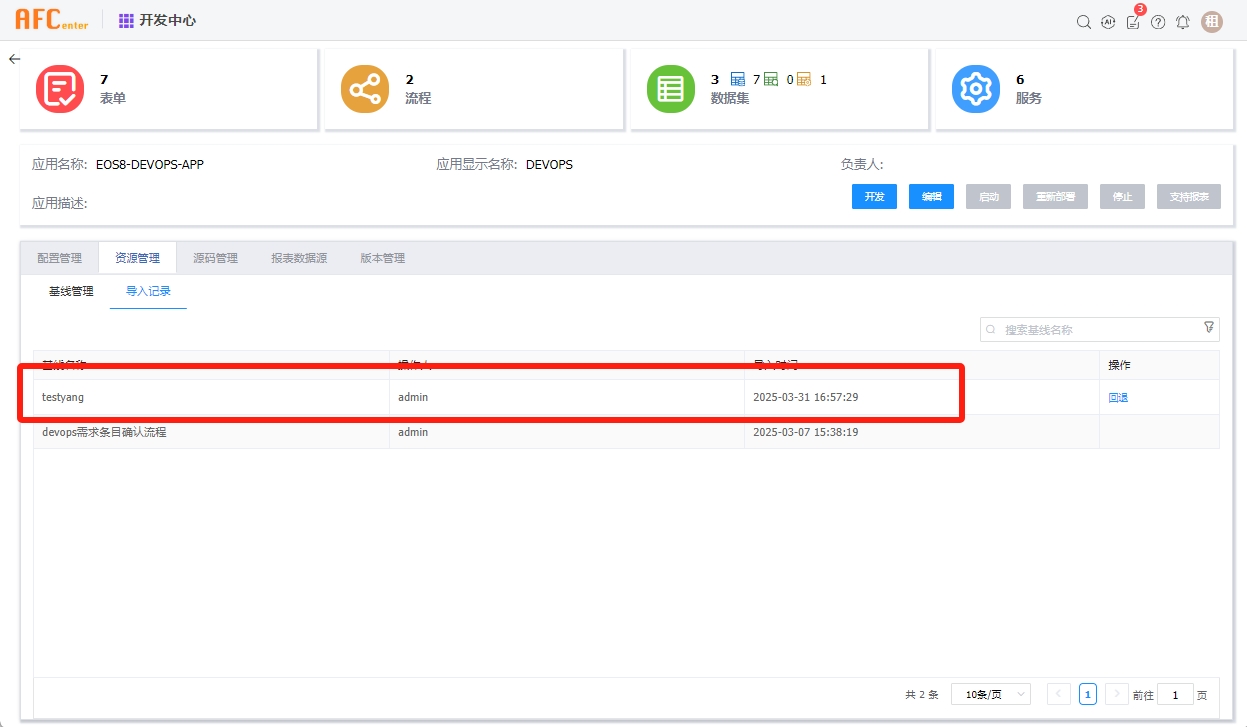 执行构建,即可在低开应用平台资源管理中看到导入记录。