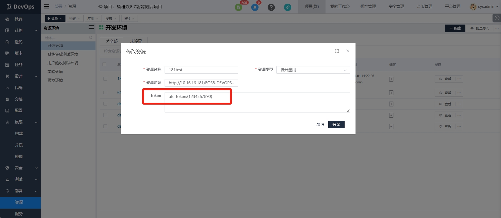 填写资源地址对应低开应用地址,通常为afcenter前端地址+/应用名称,例如http://10.16.16.181/EOS8-DEVOPS-APP