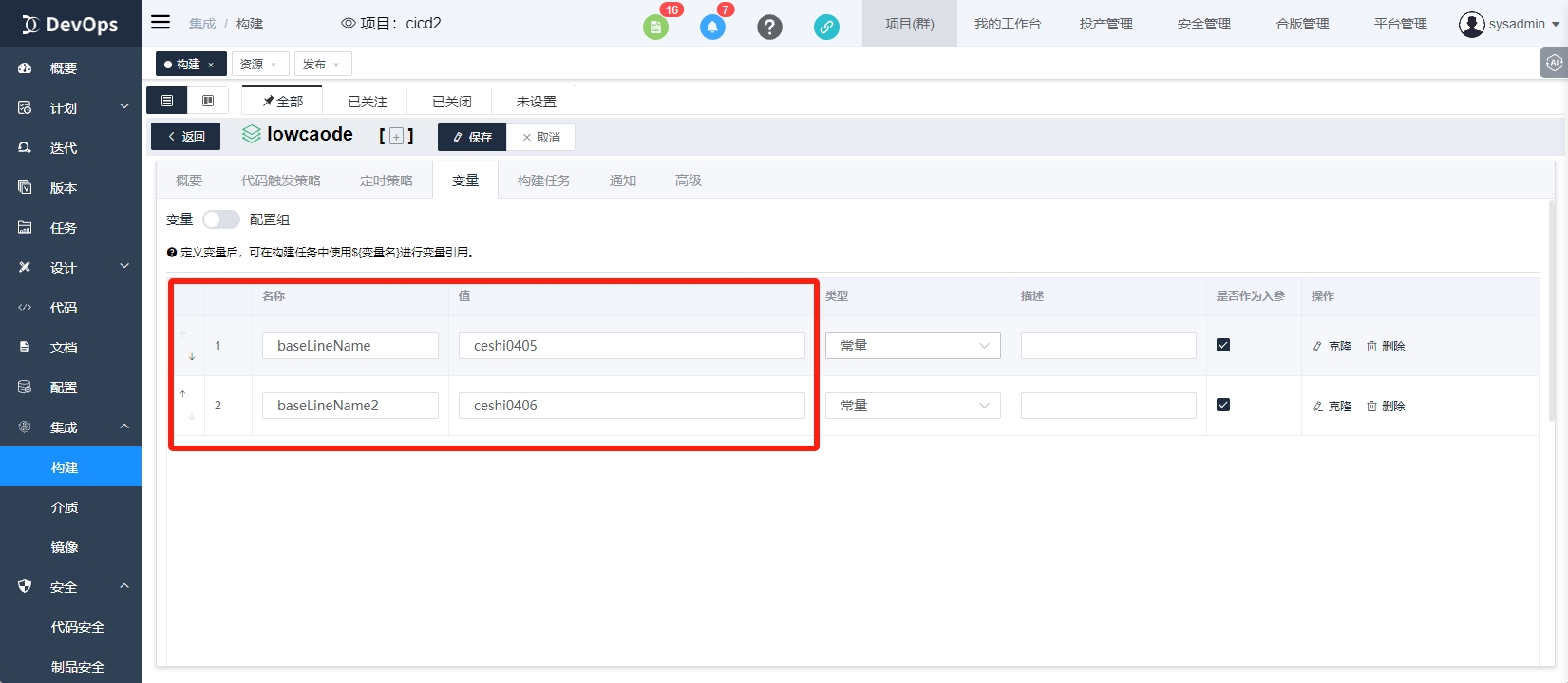 可以通过变量控制每次创建的基线名称,在这我创建了baseLineName变量,用于控制基线名称。