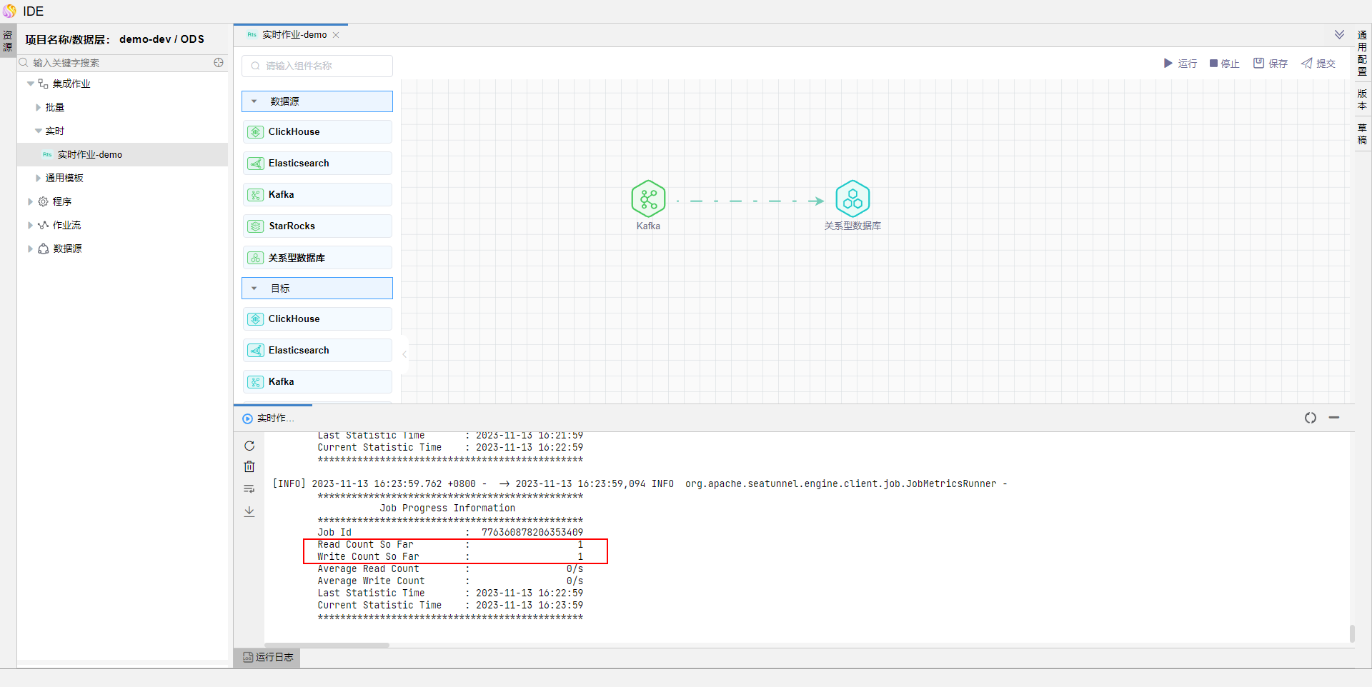 6. 当kafka中有数据时,流处理作业会将数据写入目标关系型数据库中。