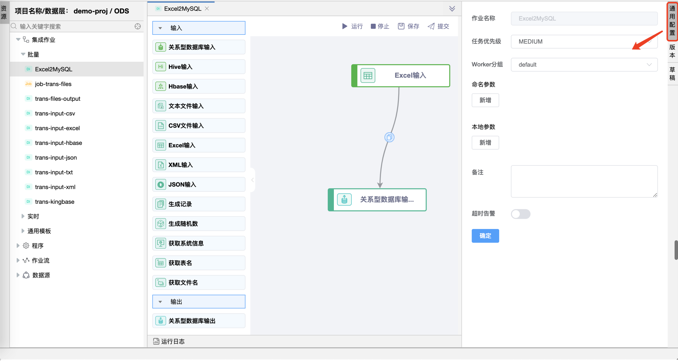 在通用配置中可以配置任务优先级、Worker 分组、命名参数、本地参数、超时告警。 修改属性后请务必点击【确定】按钮。