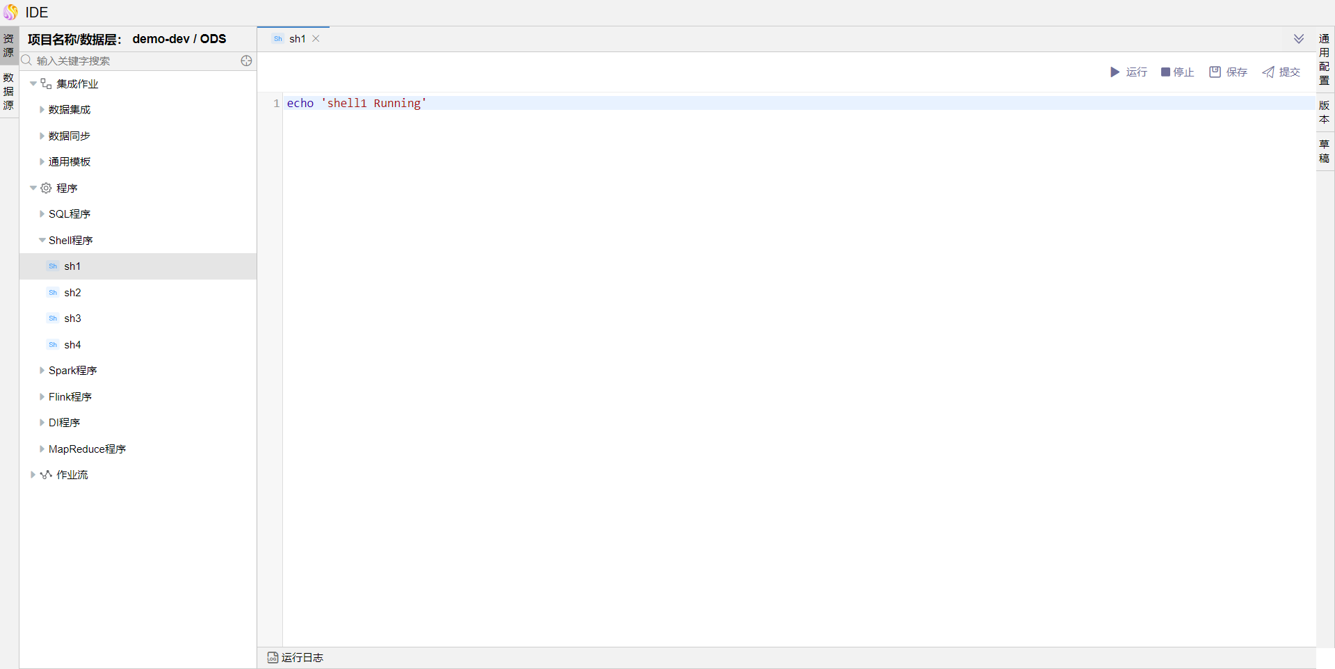 2. 在【程序】-【Shell程序】节点下,创建shell程序4个,保存并提交。