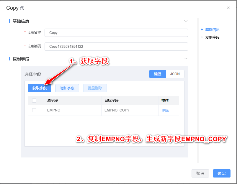 3、双击"Copy"组件,根据下图所示步骤依次配置。