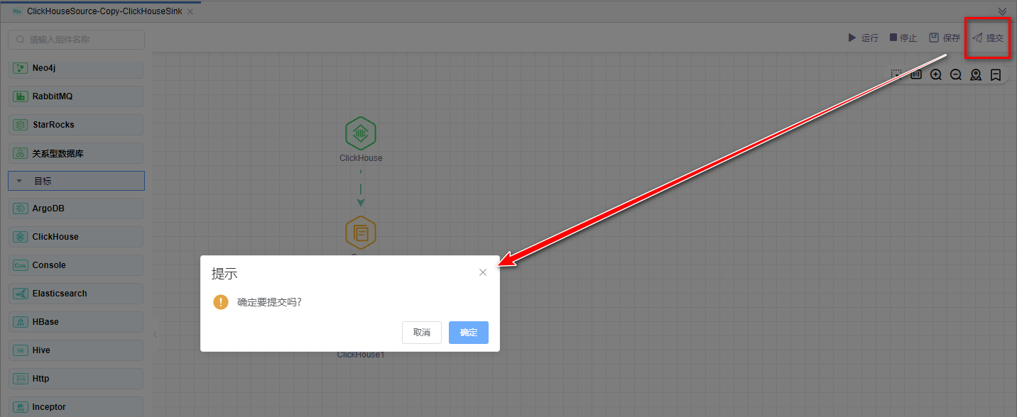 点击数据同步上的【...】,选择弹出菜单【新建数据同步作业】,作业名称为:ClickHouseSource-Copy-ClickHouseSink。