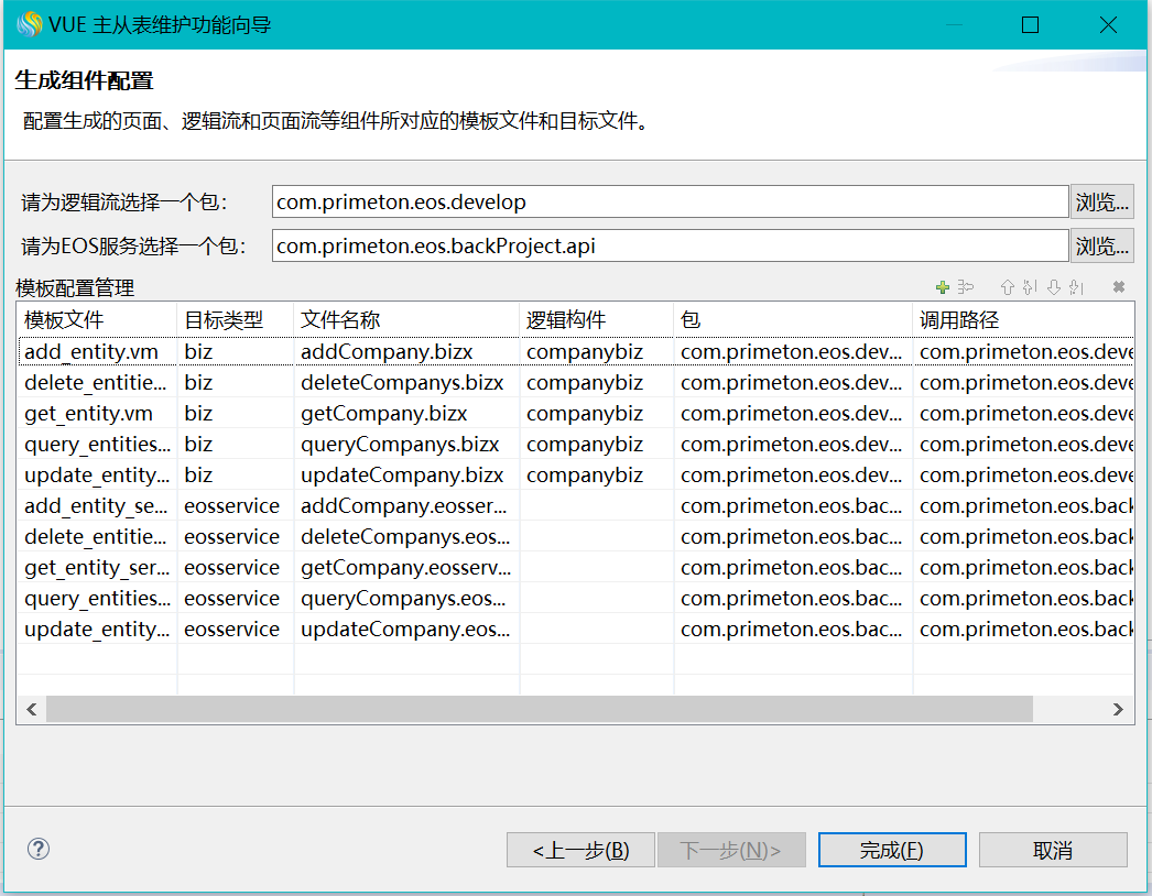 | 请为EOS服务选择一个包 | 为EOS服务选择一个目录 | 点击<浏览>按钮,在api构件包下选择一个目录 |