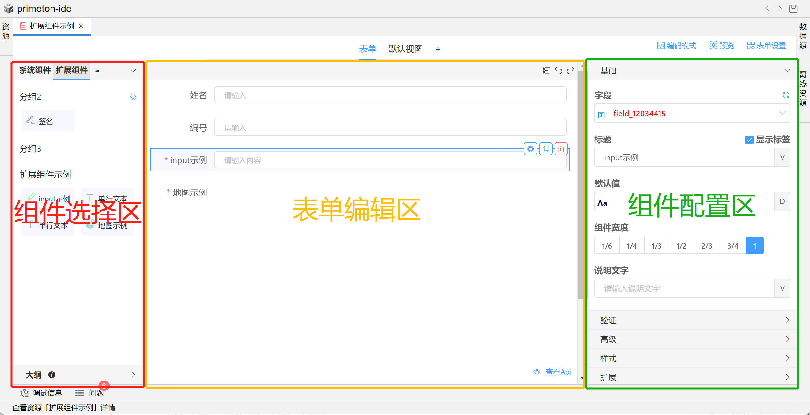 IDE表单开发页面组件可使用组件开发框架进行自定义开发。