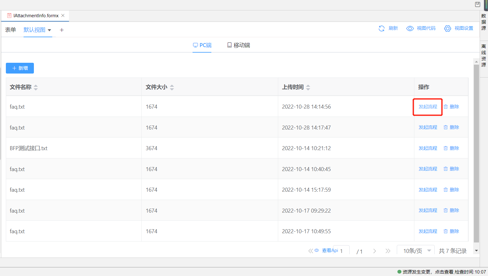 • 从视图记录发起流程
