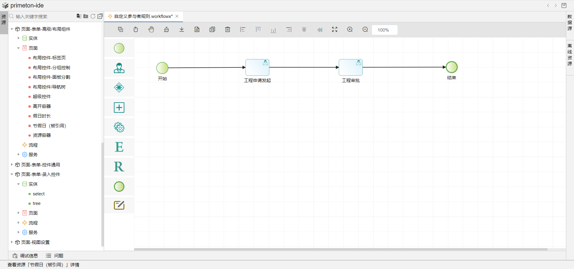 1.创建一个工程审批流程绑定工程申请表单。