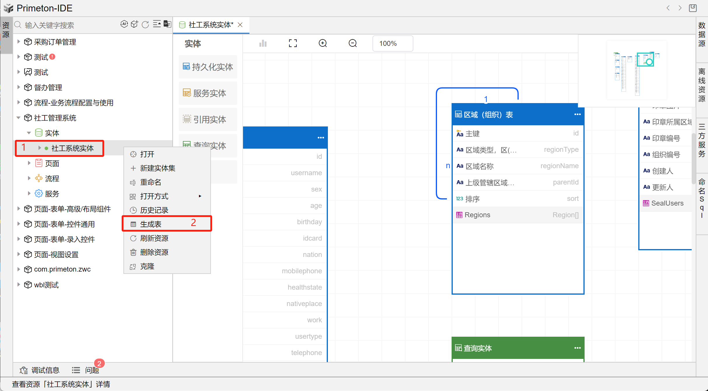 1 通过实体生成页面: 右键点击实体,选择生成页面。