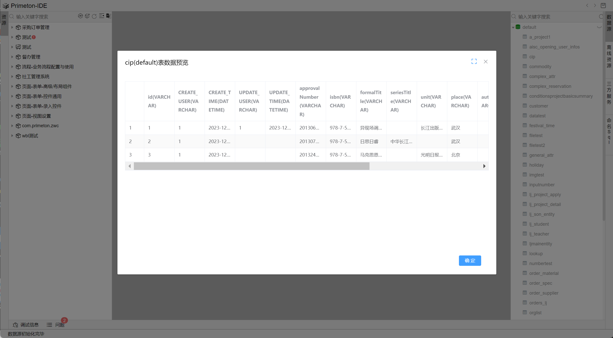 点击表数据预览图标,用户可以直接预览表中的数据并进行查看。