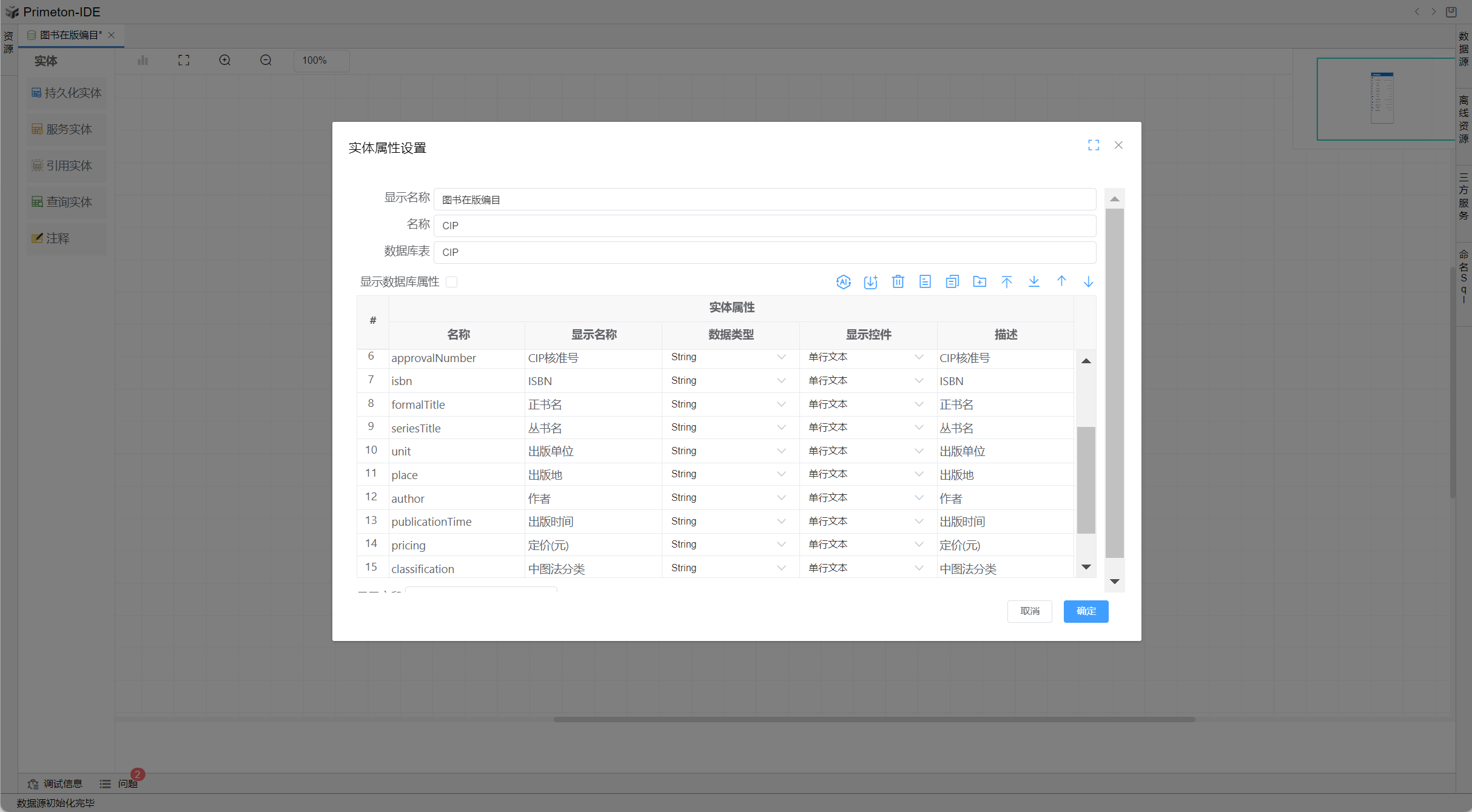 在实体属性的配置中,可以配置实体的基本信息以及实体属性信息。用户可以添加字段并进行相应的配置。这些字段可以包含各种数据类型和属性,根据实际需求进行自定义配置。
