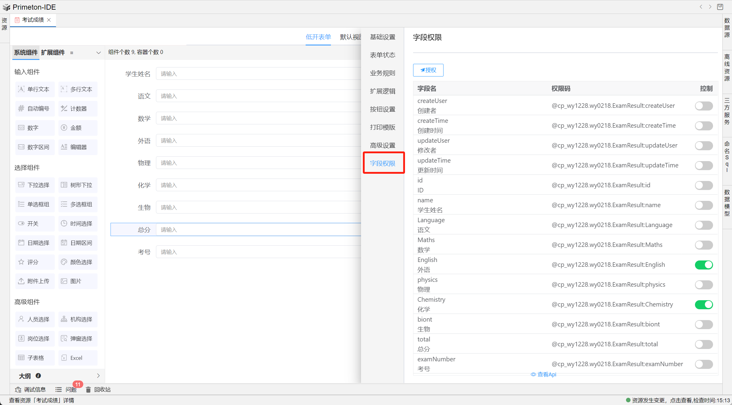 在表单内配置字段权限后,可同时控制表单和视图内该字段的使用权限,且只有授权的角色可以进行对应字段的查看使用。