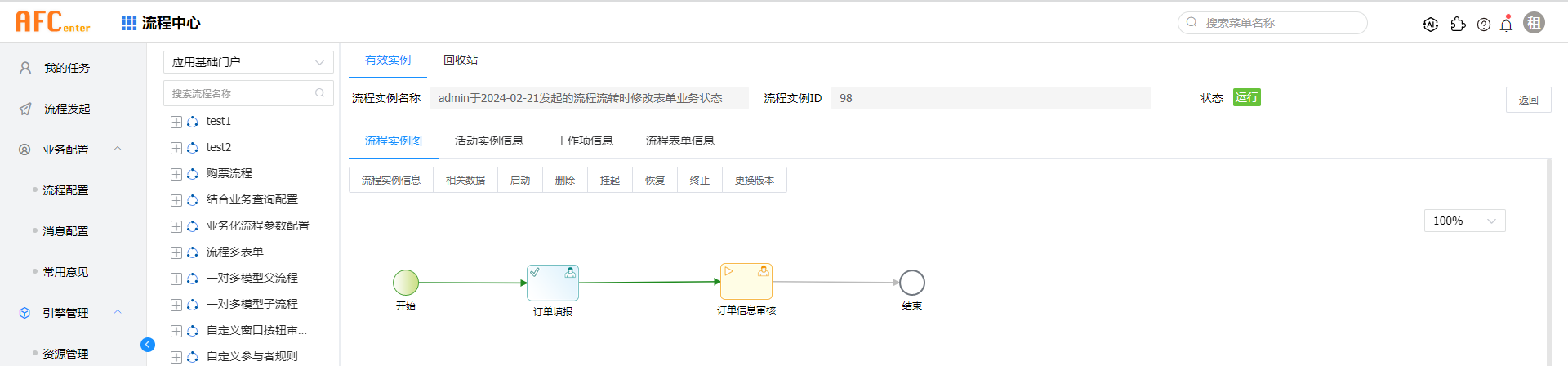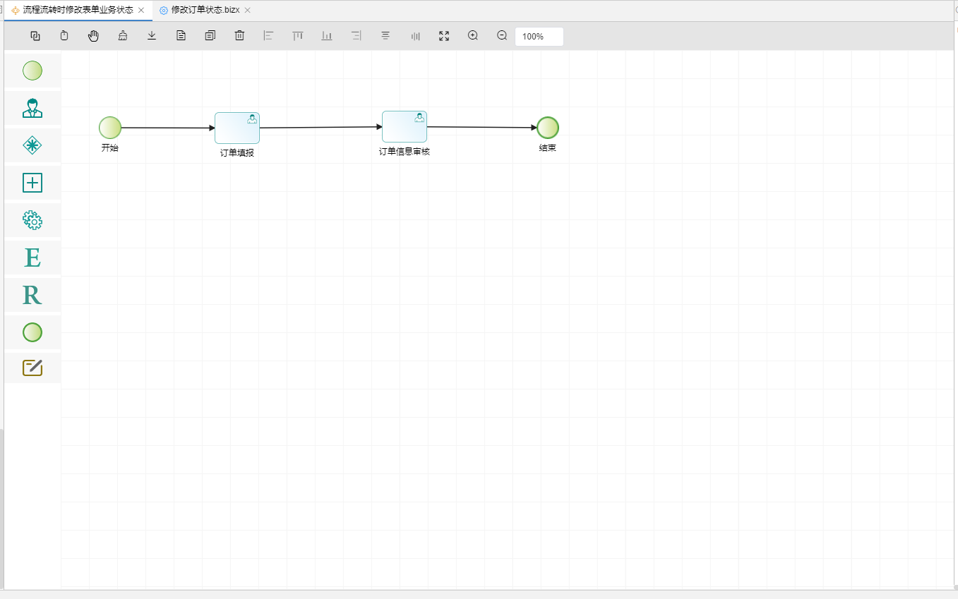 流程发起填写表单状态时,当状态为未审批时,流程流转到订单信息审核时,状态修改为审批中,当流程状态完成时,此时结束环节改写状态环节状态为审批已完成