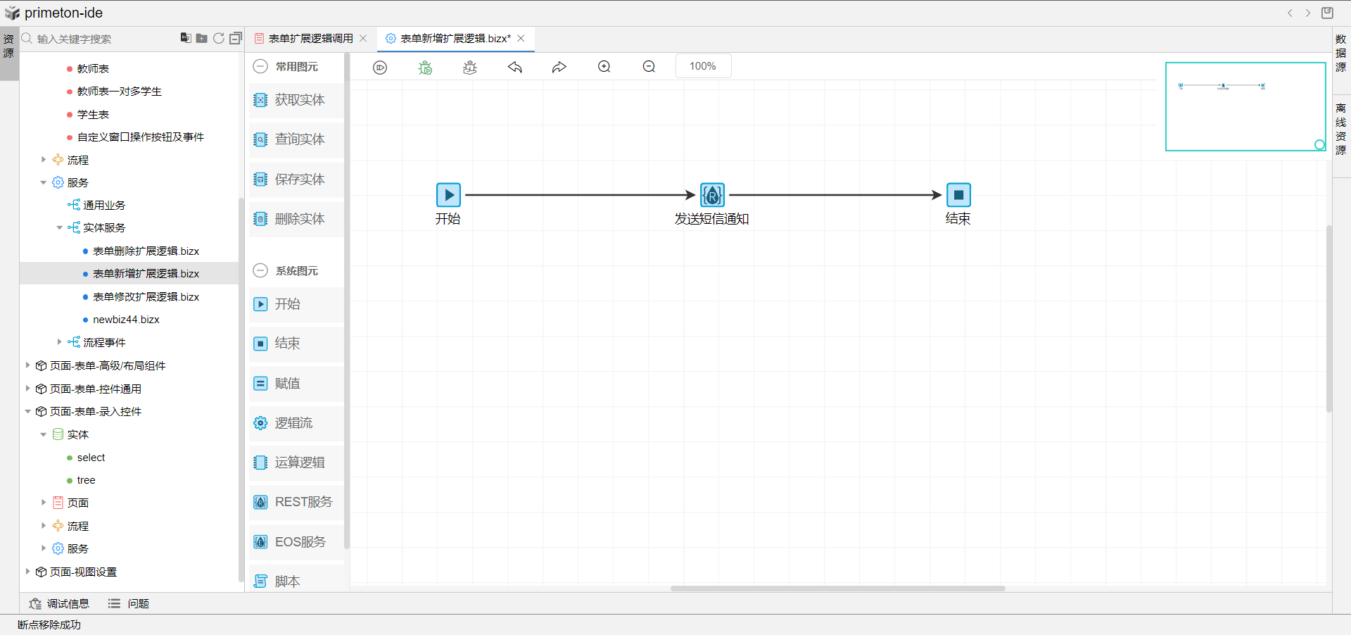 表单扩展逻辑是在新增、修改、删除表单时触发,调用EOS服务中的实体服务,完成数据操作,远程调用等一系列场景的功能。(注:扩展逻辑在流程表单中不生效,流程表单中请使用流程业务事件。)