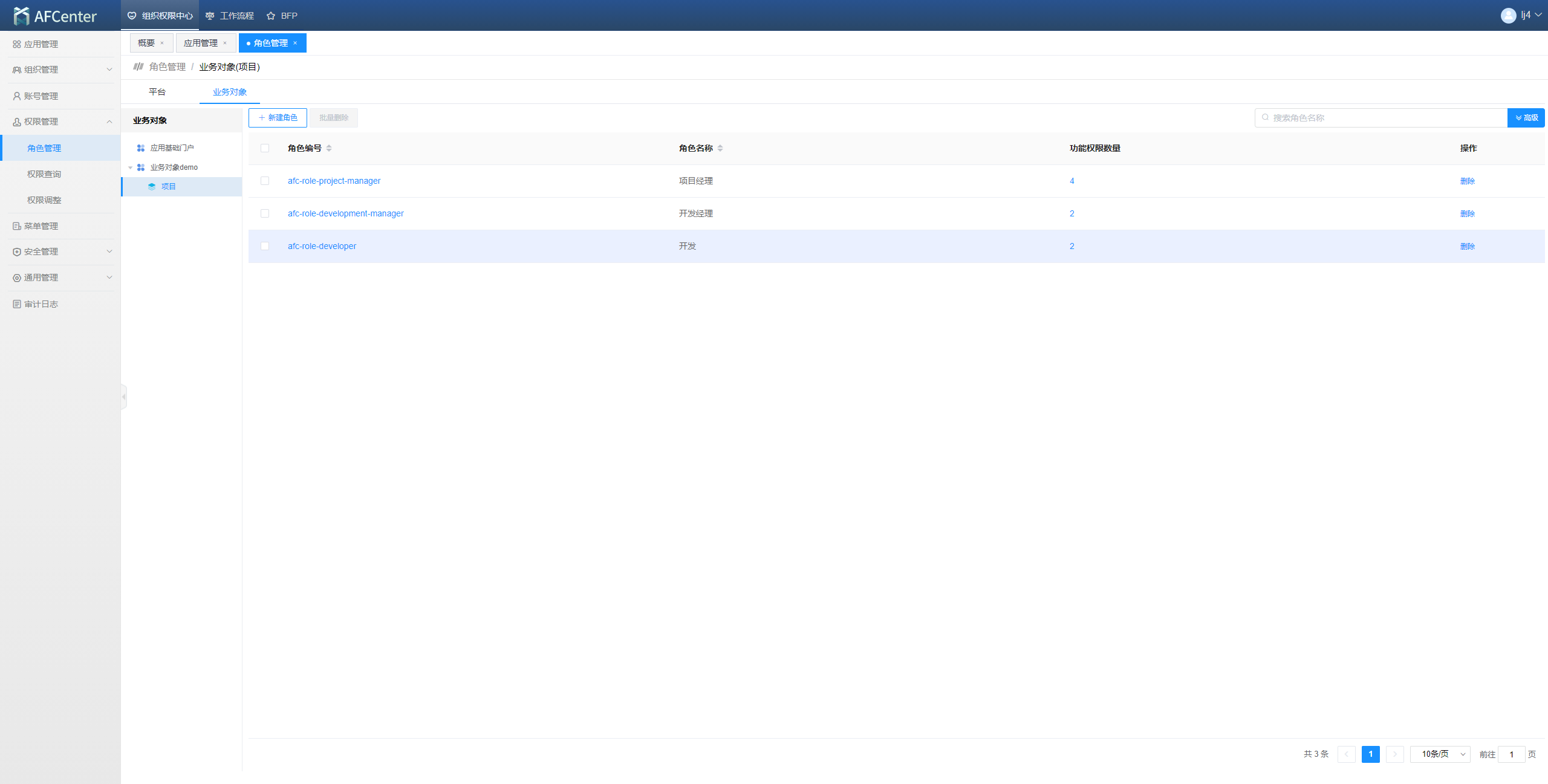 1.点击权限管理,进入角色管理,切换tab页选择业务对象。