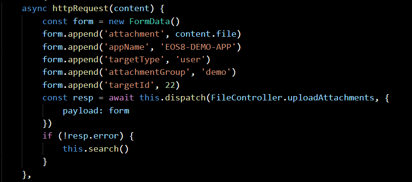 注:上传文件接口,传参需转换为formData格式。new FormData() beforeUpload,方法里可以做一些上传前的提示,例如文件 uploadError和uploadSuccess是对上传结果失败和成果的处理。