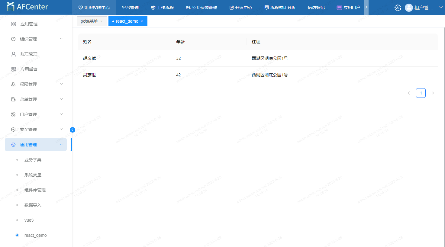 至此,刷新页面,即可在相应菜单中展示react的页面