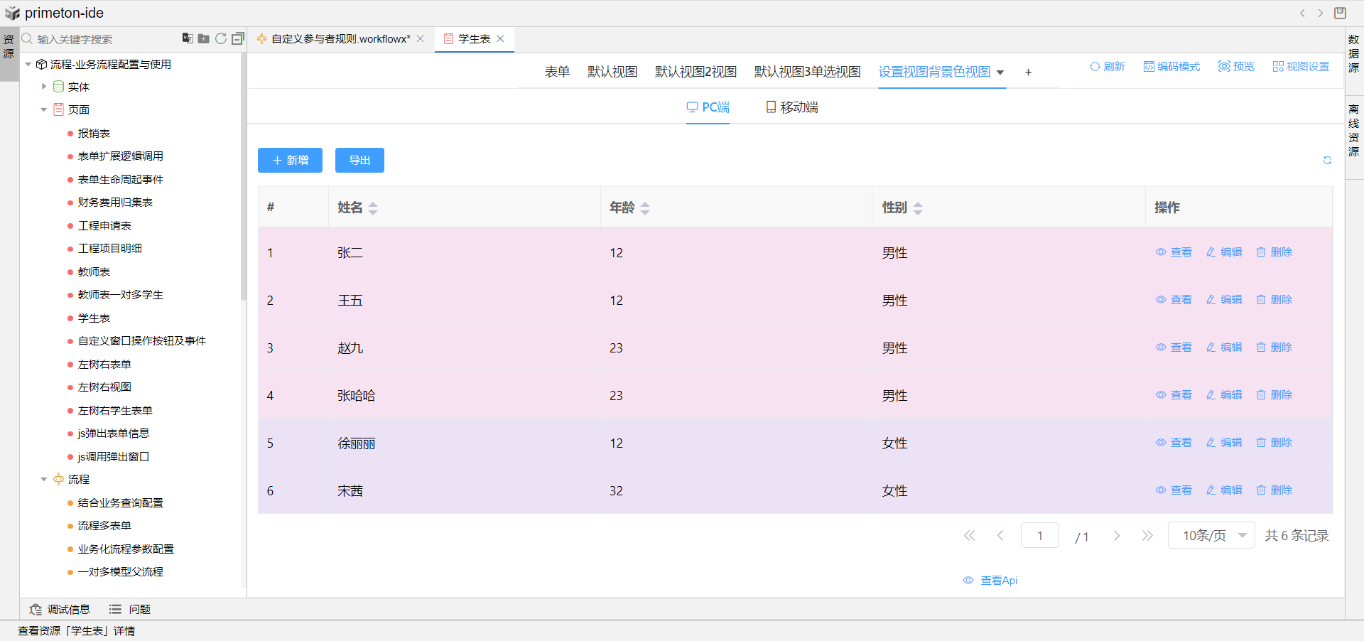 使用场景:学生视图列表中根据性别显示不同的背景色。