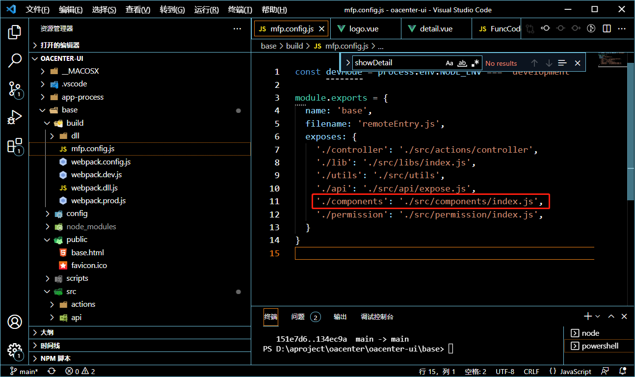 在base\build\mfp.config.js文件中暴露给其他微应用