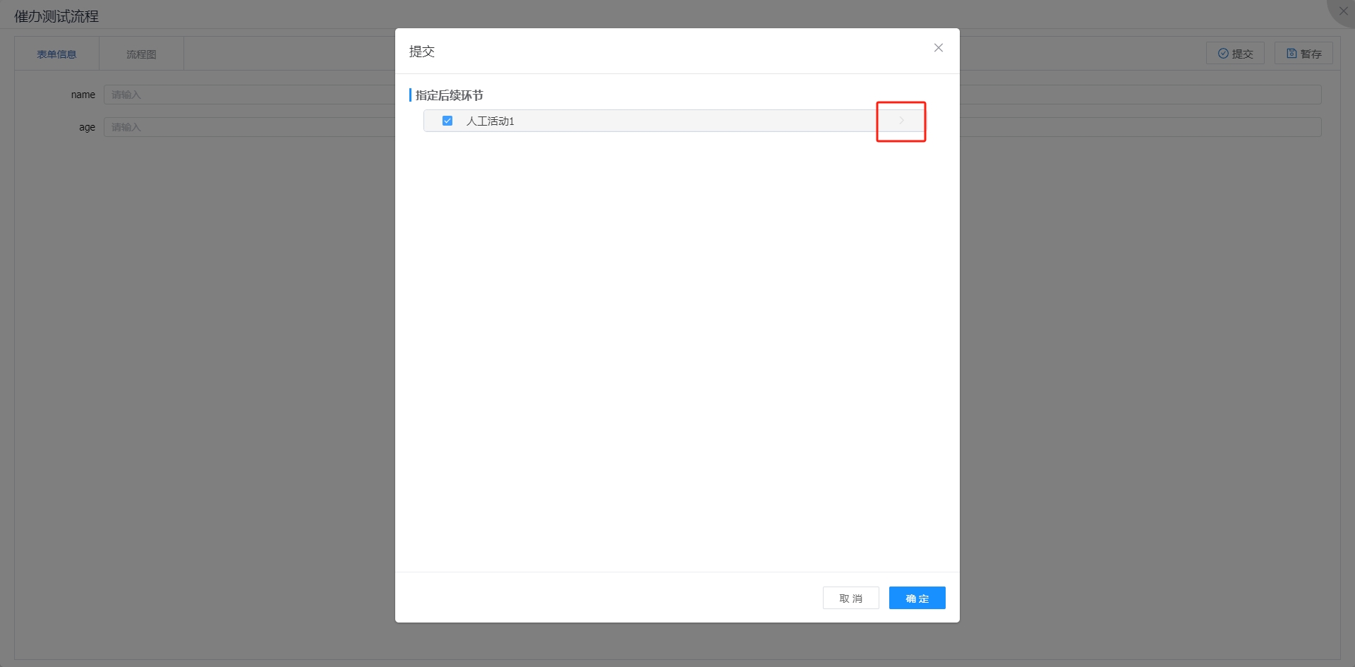 2. 当选择指定后续环节后,并未勾选指定后续环节参与者,则在相应流程环节的提交页面不可选择具体的人员信息。