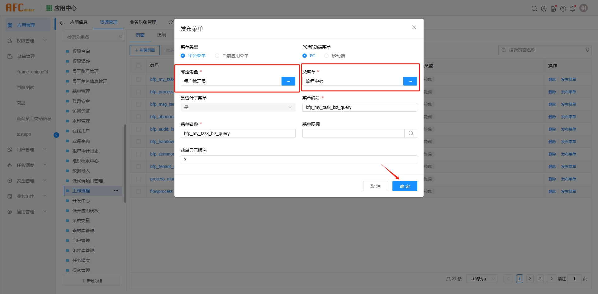 创建流程并且绑定上步创建的表单,设置业务查询。