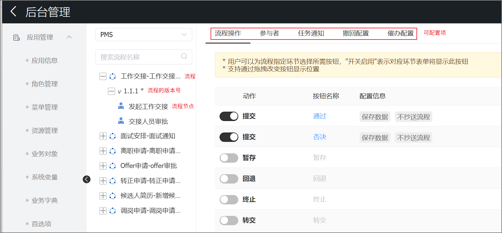 进入流程中心,然后点击左侧导航栏中的业务配置-流程配置。