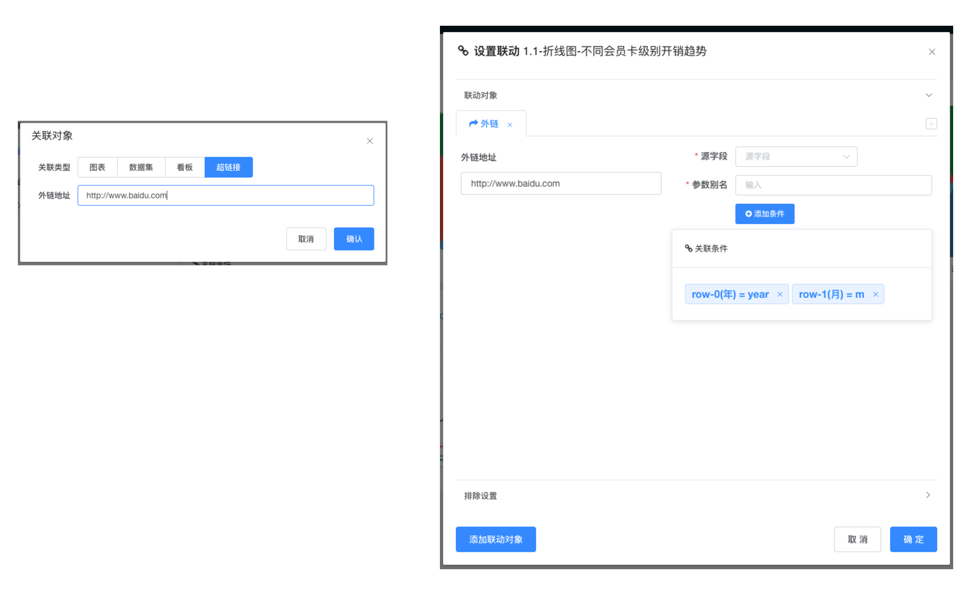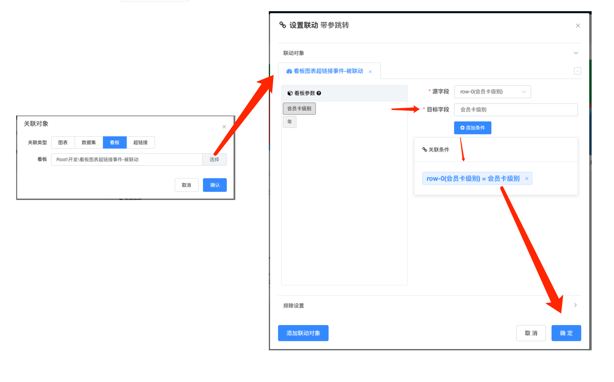 4. 在联动配置关联对象栏配置关联规则