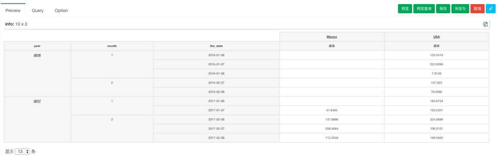 - 交叉表所有值类型计算与转换都是在表格已有值之上进行,不会对数据原进行额外的查询