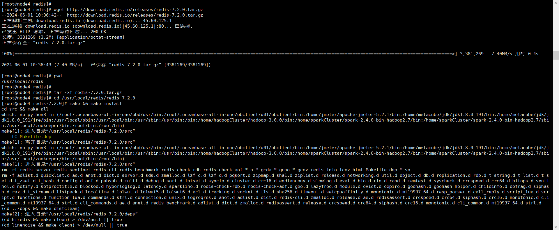 cd /usr/local/redis/redis-7.2.0 make && make install