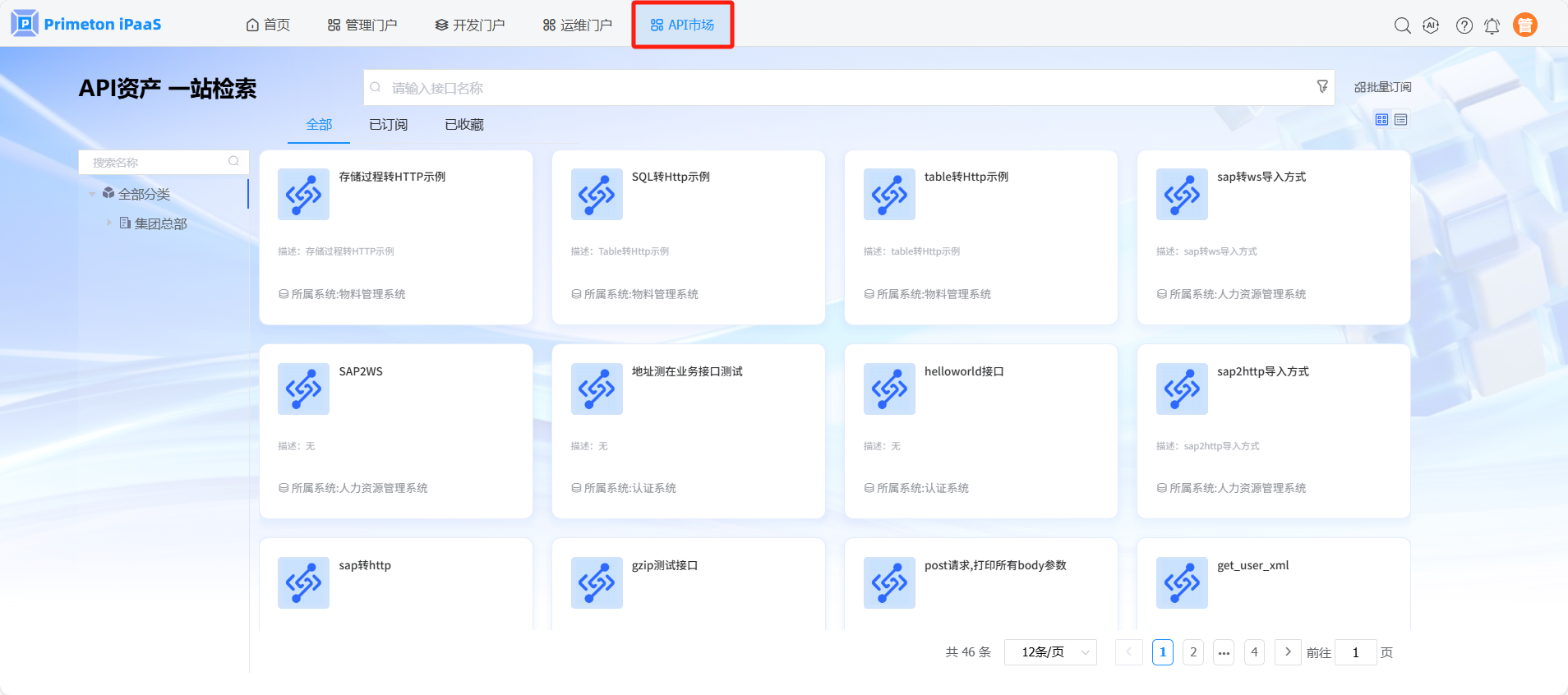 使用manager账号(默认密码:000000)登录系统,点击API市场,进入API市场。