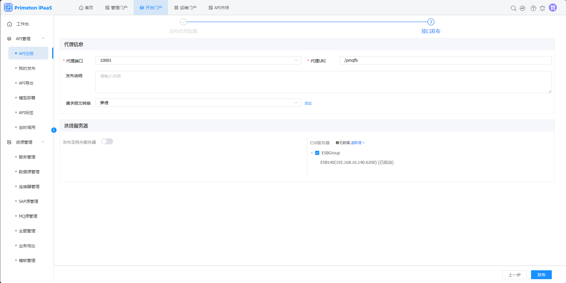 6.点击“发布”,接口发布成功。