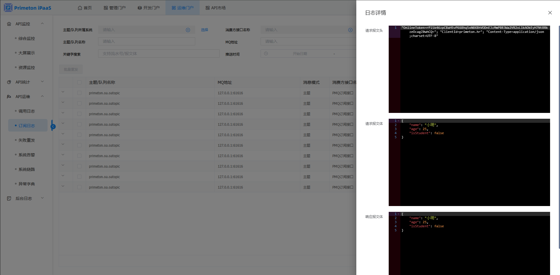 • HTTP方式消息发布接口日志