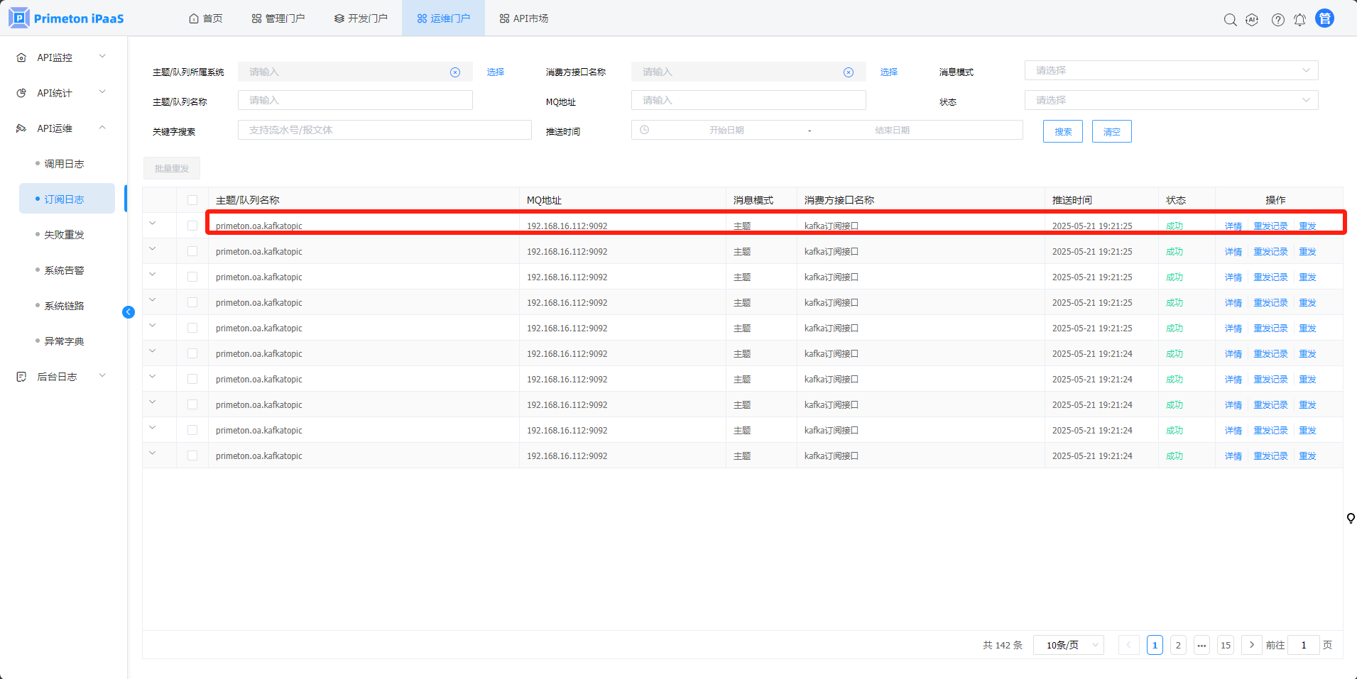 1. 点击菜单“API运维”>"订阅日志",进入“订阅日志”页面。