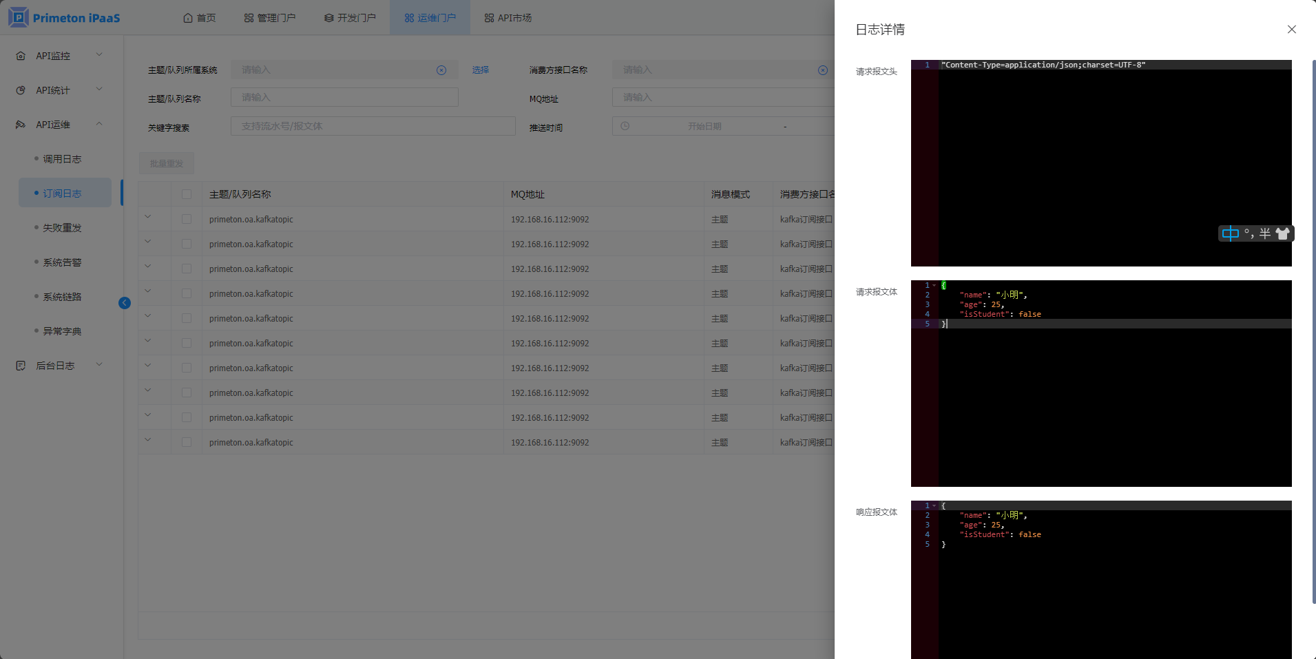 • HTTP方式消息发布接口日志