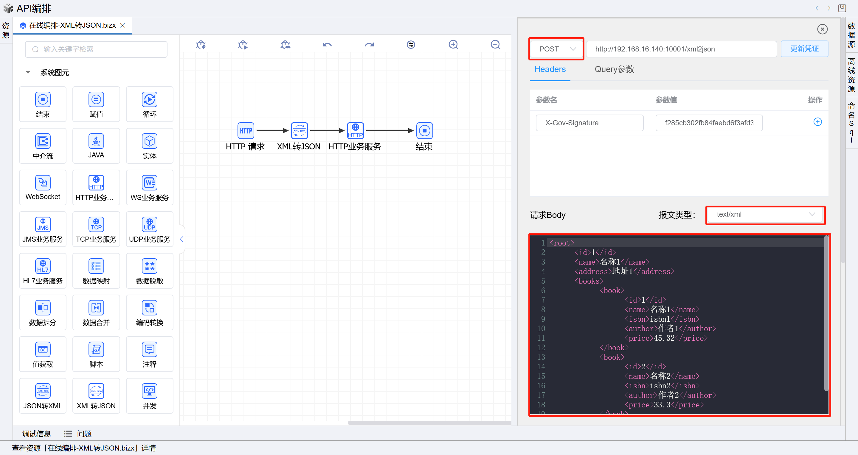 - 点击测试即可成功调用接口,返回值为xml格式数据,符合预期,如下图: