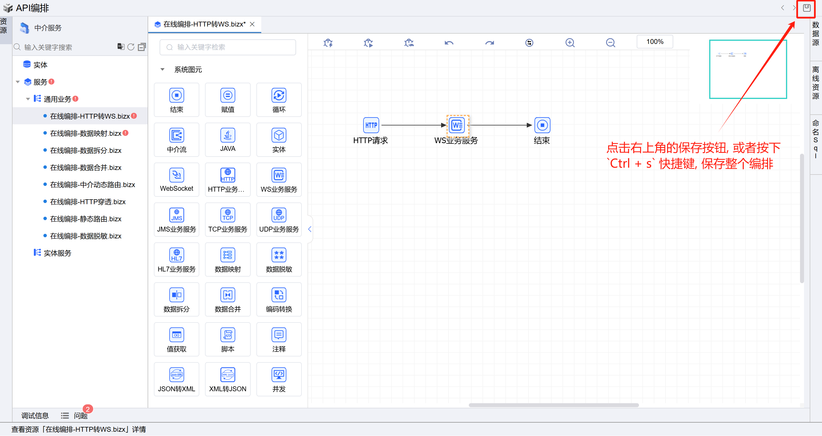 1.1 或者点击中介服务,点击API编排按钮进入在线编排页面。如下图: