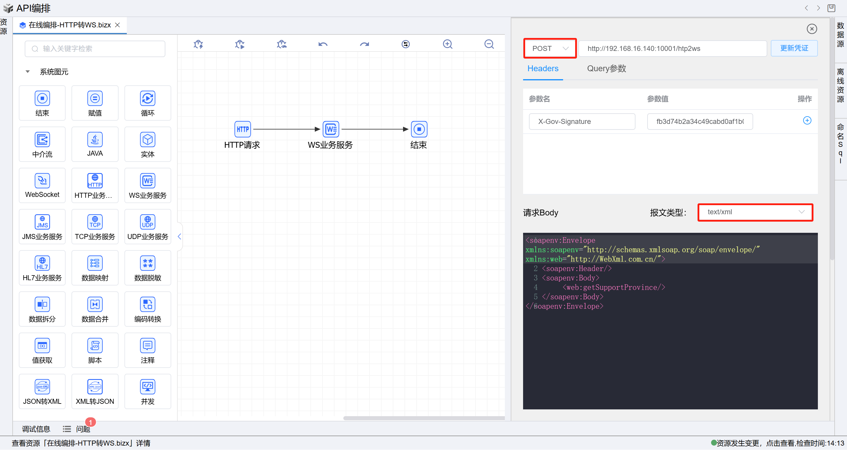 打开测试界面,填写请求内容body体填写如下xml内容。