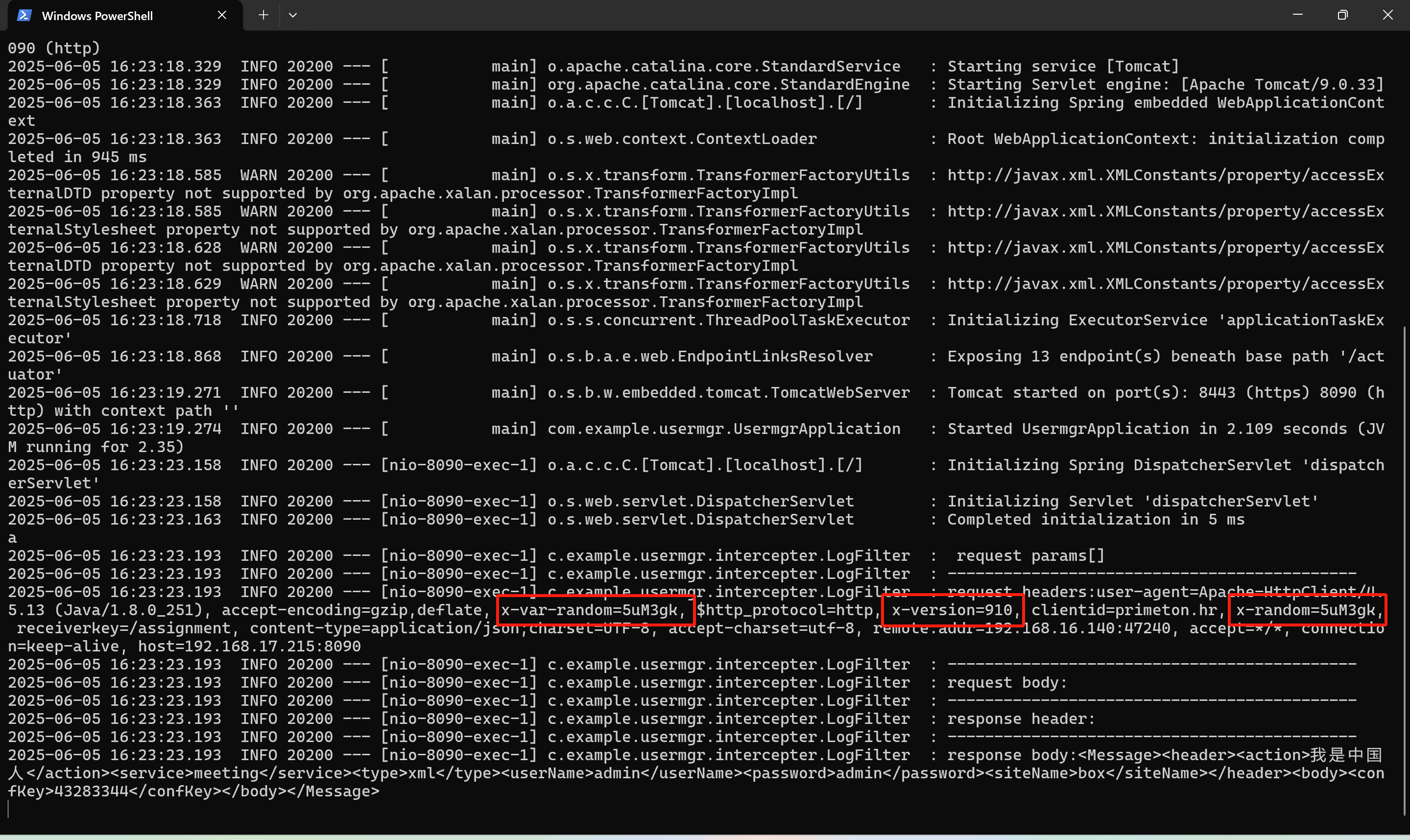 点击测试,在业务服务方可以看到请求头中