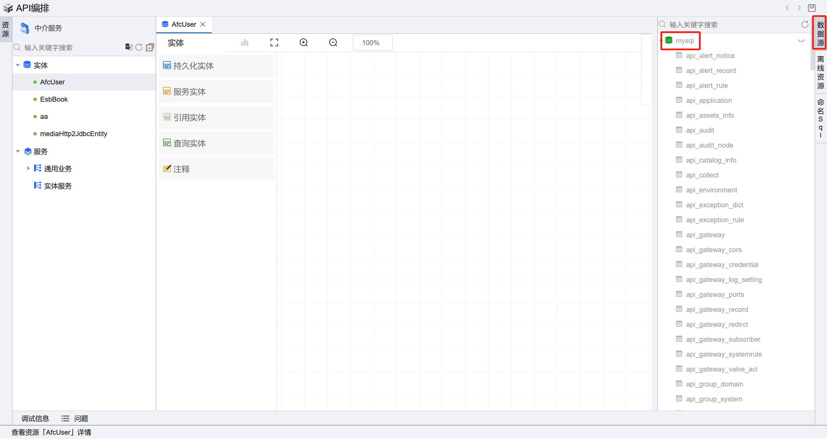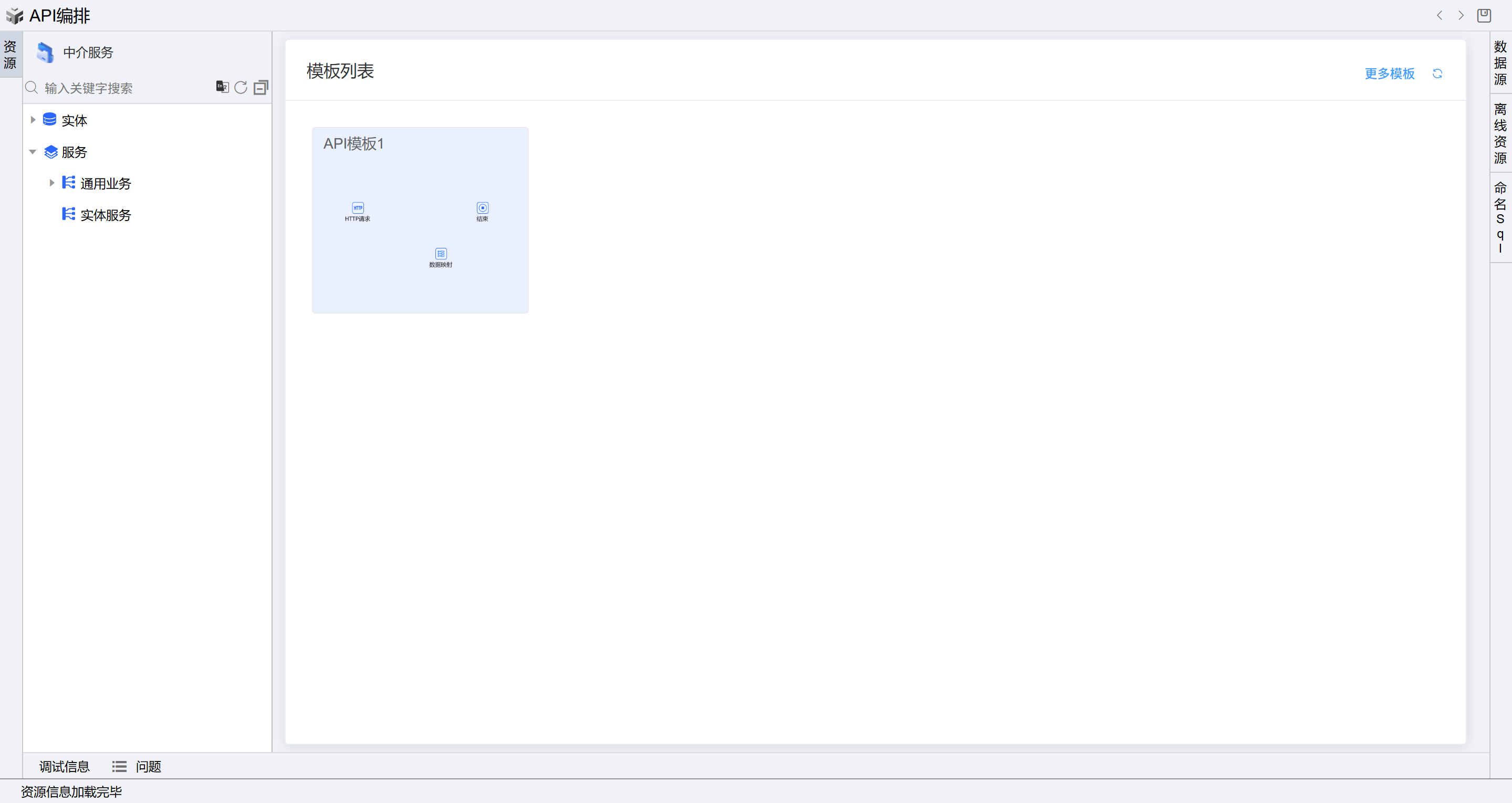 - 1.1. 或者点击中介服务,点击API编排按钮进入在线编排页面。如下图:
