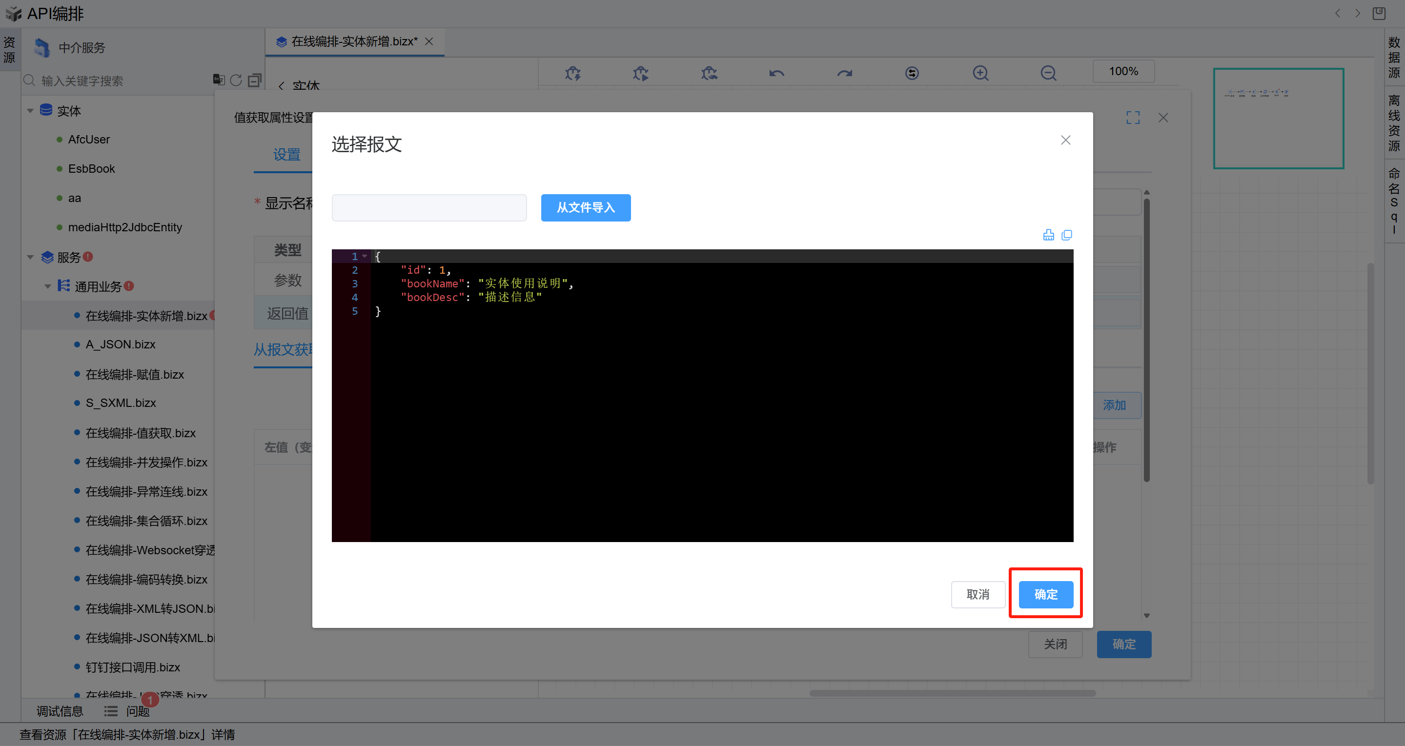 id、book_name、book_desc, 右值下拉选择报文中对应的字段即可,点击“确定”按钮保存