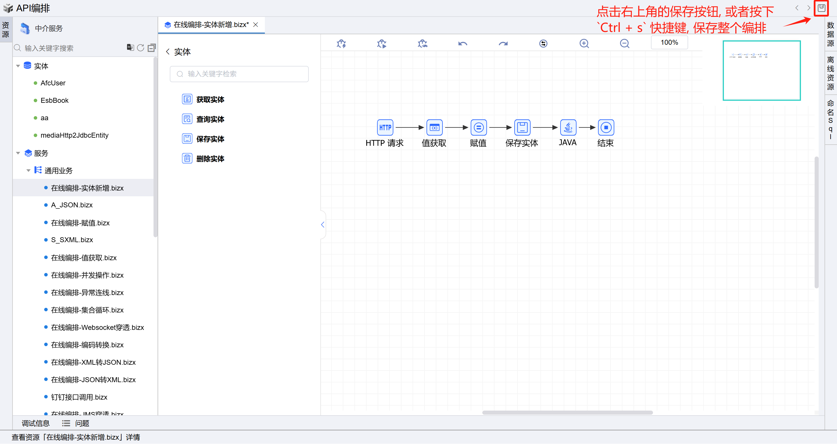 - 1.1. 或者点击中介服务,点击API编排按钮进入在线编排页面。如下图: